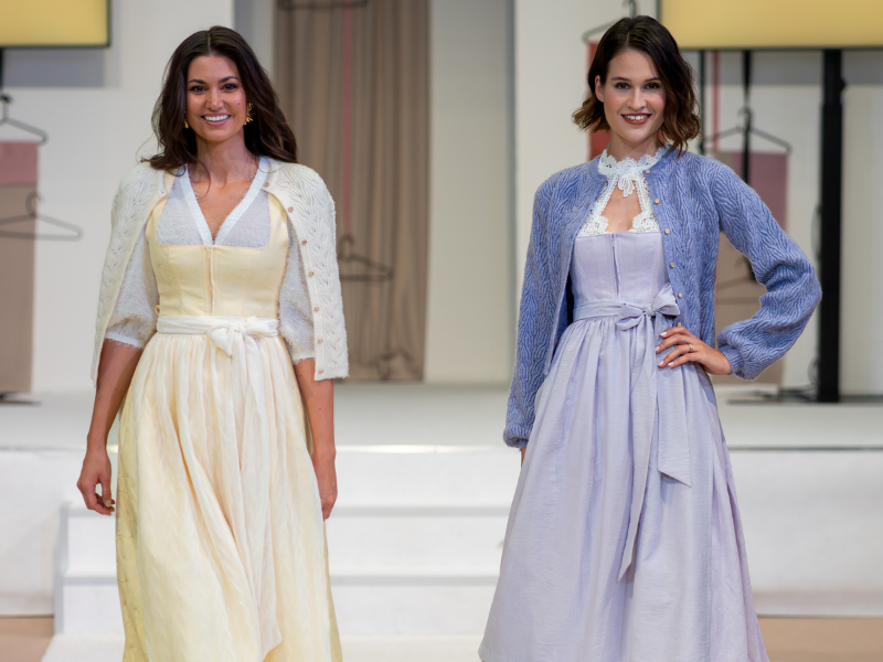 Feminin, poetisch, kraftvoll – die Dirndltrends 2026 versprechen eine neue Sanftheit. Pastellige Nuancen wie Apfelgrün, Buttergelb, Pfirsich und Holunderblütenweiß schaffen einen modernen Garten Eden. Harmonische Farbspiele zwischen Rock und Mieder, sanfte Ton-in-Ton-Übergänge und raffinierte Stoffkombinationen setzen stilistische Akzente. Strukturierte Sommerjacquards, Denimdetails oder tonige Blumendessins sorgen für modische Spannung.